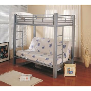 Twin Futon Metal Bunk Bed in Silver Finish. Enjoy the total usability of this bedroom furniture set designed specifically for space saving and style. This set is made of sturdy welded metal beams and allows for a twin mattress on top and a full size futon mattress on the bottom, while utilizing the maximum potential of space in the room. This bed and futon set is the perfect addition to your moder...See More Information At Amazon.Com